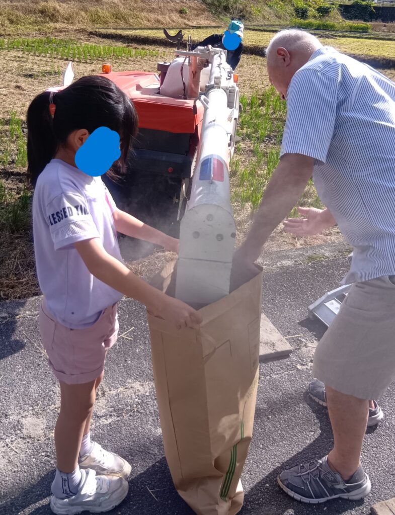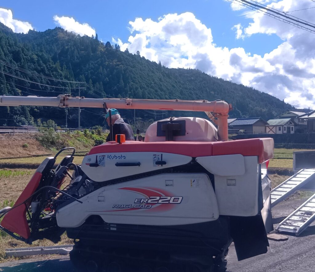 コンバインで脱穀後は脱穀したお米をコンバインから出します!