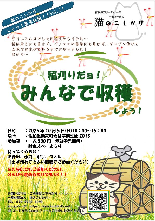 猫のこしかけ初のお米収穫です!!